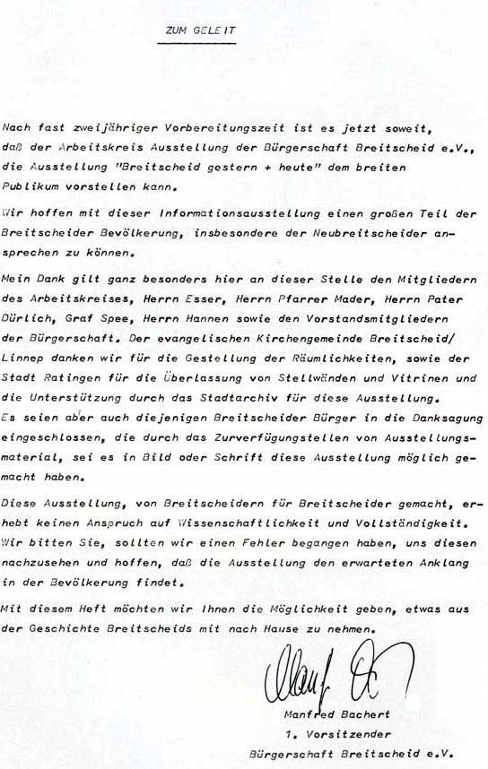 Anlässlich der im Jahre 1980 stattgefundenen Ausstellung zur Geschichte Breitscheids hat die Bürgerschaft Breitsched e.V. die nachfolgende Broschüre herausgegeben.